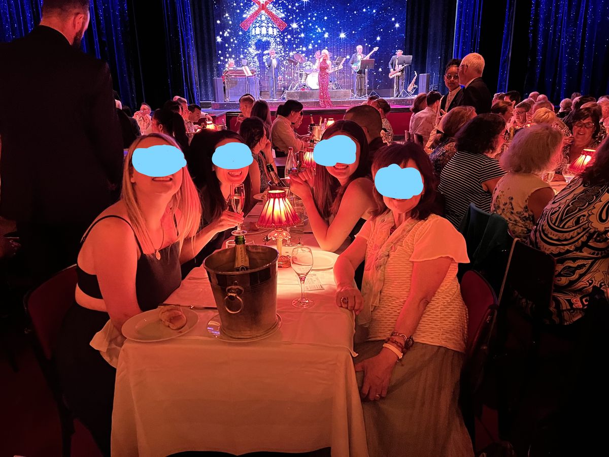 劇場や映画館のような座席ではなく豪華な内装の館内とテーブル席に感激しました。シャンパンを飲みながら優雅な気分!パリにいるんだぁと実感したものです。
