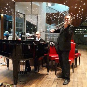 迷った挙句、私は訪問着にし、夫は襟付きのシャツにジャケットで行きましたが、周りの方はカジュアルからドレスアップといろいろでした。受付から案内、船内でもスタッフの対応がよく、大変気分よく過ごせました。写真を撮りに階上にいたとき、次のお料理が整ったとスタッフが呼びに来てくれました。席も生演奏のピアノのすぐそばの窓際で、演奏の折、私のためにと日本の曲をプレゼントしてくださいました。お料理も正直、あまり期待していなかったのですがよい意味で裏切られました、おいしかったですよ。