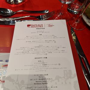 家族の古希のお祝いで、今回ディナークルーズを予約しました。テーブル担当のスタッフの方や受付の方など、みなさんとても対応が良く、座席は隣と適度に離れているので、ゆっくり過ごすことがりできました。セーヌ川沿いの夜景も素晴らしく、良い記念になりました。