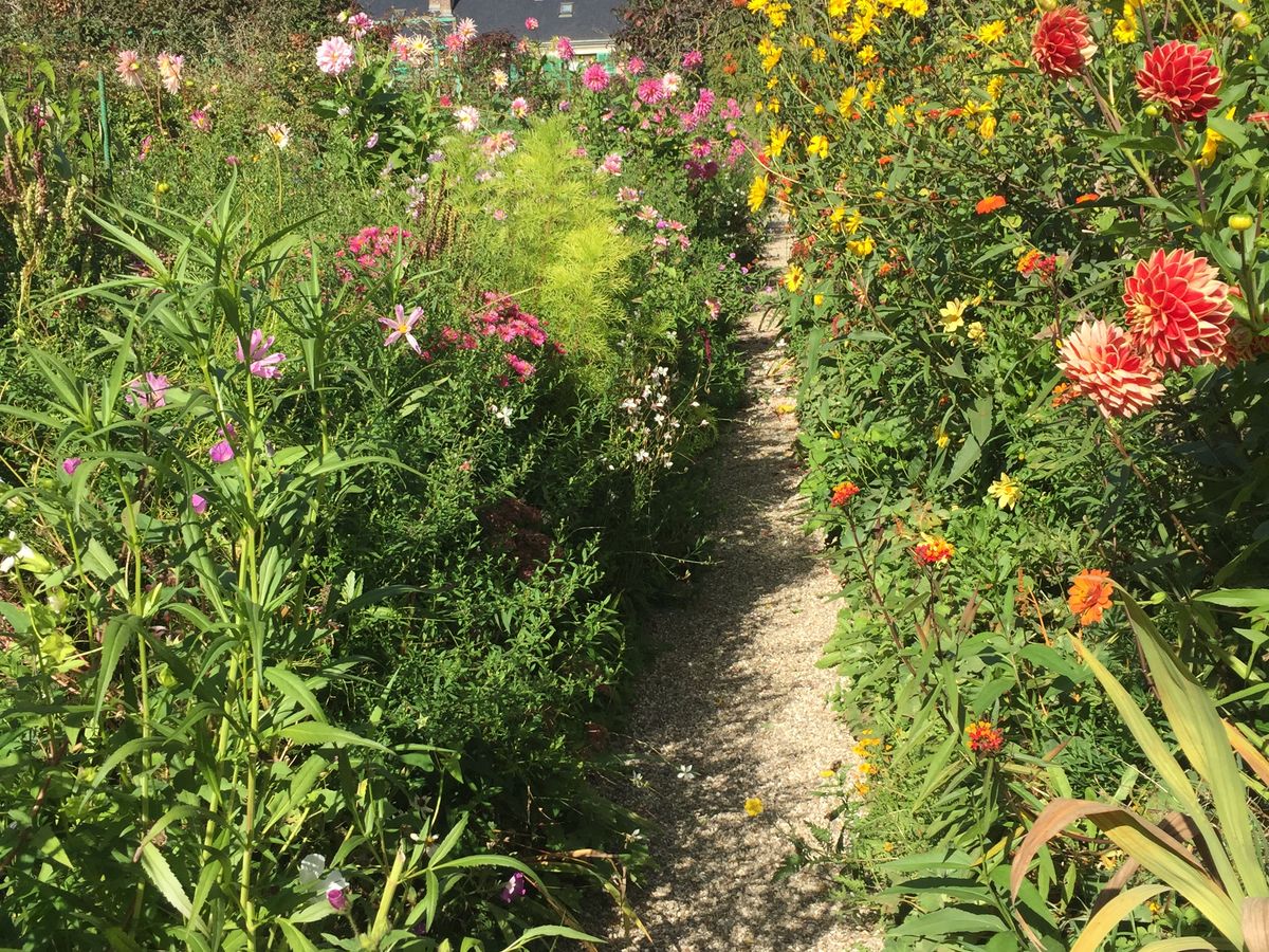 10月なので、花はもう終わっていたと思っていたのに、ダリアやナスタチューム等々とてもきれいに咲いていました。絵画でみていたとおりの庭を実際に目の前にして、感激でした。モネの家に展示してある浮世絵の数の多さには、ビックリです。本当に日本に関心が深かったのが、良く窺えます。