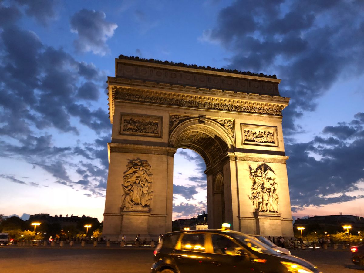 小雨が降る夕暮れのエッフェル塔、凱旋門が見れて嬉しかったです(o^^o)