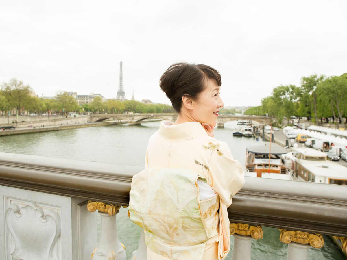 パリで着物を着て小さな文化交流。亡き義母の着物を着ることで一緒に旅をしているような気分。当日は生憎のお天気でしたが、初春の穏やかなパリでの撮影は、カメラマンさんとの自然なやり取りの中で、終始楽しく過ごすことがでしました。最初は少し緊張しましたが、仕上がりの写真を拝見すると、最初と最後では表情が和らいでいるのがわかります。大満足です。これもカメラマンさんのお陰です。またお願いすると思います。よろしくお願いいたします。