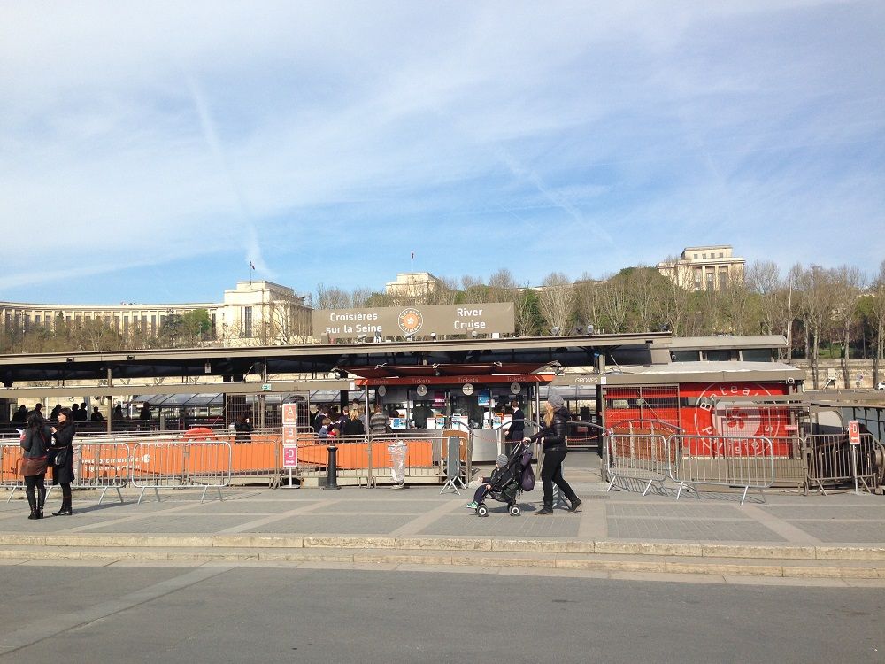 エッフェル塔の下のセーヌ川クルーズ乗り場でバス利用は終わりです。同じバスに複数のツアーの人が乗っていて、ここから別々の行動になるので、きちんとガイドさんの説明を聞いておく必要があります。私たちはガイドさんと一緒にエッフェル塔に徒歩で移動し、展望台入場です。
