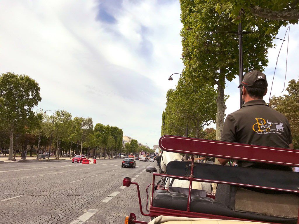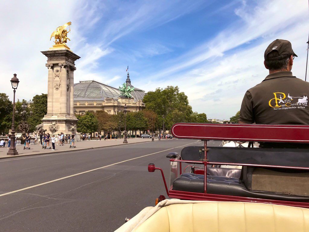 1時間ですと、アレキサンダー橋のあたりまでいき、シャンデリゼ通りを経て周回してきます。1時間でもエッフェル塔付近の主要な観光地を外から観て回れスリなどの心配もなくとても安心感がありました。距離の体感はあっという間ですが、石畳を蹴る馬の蹄の音が歴史感あふれる風靡さがありとてもワクワクします。なおいうなら1時間コースには石畳のエリアが少なく、もっと先まで紹介してくれる1.5、2時間コースだったらまた違う音色が楽しめたのではないかと次回に夢を見る次第です。2人以上ですとより会話も弾むと思いますので、思い切って1.5時間や2時間を試してみてもいいかもしれません。ぜひ御一考を!