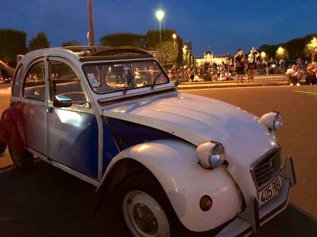 とても明朗なガイドさんが乗せてくれるレトロカーはなんと「2CV シトロエン」。『007 ユア・アイズ・オンリー』や『ルパン三世 カリオストロの城』でも知られるあの小さくてかわいい車体に揺られて疾走するパリの夜の街はアトラクション性の高いオプショナルになっています。