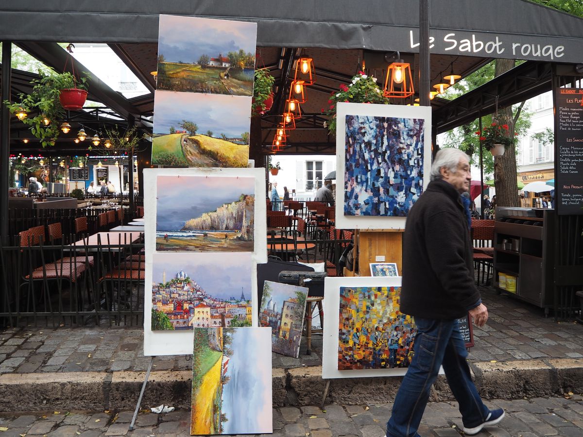 往年の芸術家ルノワール、ピカソ、ユトリロがたむろしたテルトル広場やそこにあるカフェ、現在の画家たちもその広場で絵を売っていました。