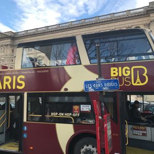 曇り空で、時折小雨もパラつく生憎の天気。2階オープンは寒く、1階からの車窓を楽しみました。パリの初日か2日目に予定に入れましょう。バスがわりに使わないのなら、1日券でいいと思います。また、トリコロールカラーなど3社あるみたいです。3社の比較はしていませんが、茶バスよりトリコロールカラーが良かったです。