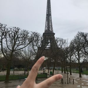 小雨が降る夕暮れのエッフェル塔、凱旋門が見れて嬉しかったです(o^^o)