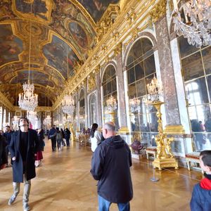 午後、再度チェックインを確認しヴェルサイユ宮殿へ出発、車内で無線式のイヤホンレシーバーを各自に渡され、1時間もかからず現地に到着。セキュリティーチェックを受けてゲートの中へ、さらに団体専用入口に向けて広大な石畳の広場を歩いて入口までたどり着く。
