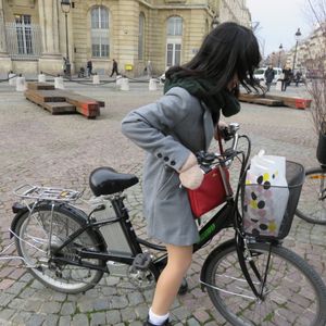 笑顔のかわいいかおりさんに電動自転車の乗り方を教わり、軽く1周した後、パリの街へと飛び出して行きました~!