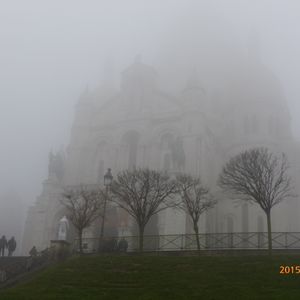 7日朝は曇り空。ヨーロッパ特有の冬空と思っていると、近年の暖冬の影響もあるのか、一面の霧でエッフェル塔も足元しか見えないは、モンマルトルの丘もサクレクール寺院はどこ?丘から一望できるはずのパリの街も真っ白。ベテランガイドさんも、「こんな日は初めて」 といわれるような残念なツアーの始まりでしたが、やはり、個人で公共の交通機関を使って短時間に回わることはできないし、ゆったりしたバスの中で歴史的背景や街中が世界遺産のようなパリを解説を聞きながら観光できるので、お勧めです。