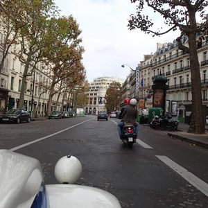 パリは自転車道が整備されていますが、右左折では自動車道を走ります。日本では右折の時は交差点を渡って、信号が変わってから右折直進しますが、パリでは自動車道の左折(日本での右折)レーンへ乗り入れて自動車とともに左折します。