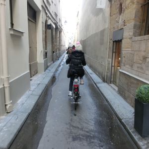 何度も訪れているパリですが、どうしても距離のある移動はバスか地下鉄。自転車で回ることでそれぞれの観光スポットが点と点から線へと変わり、見落としがちな何気ない風景や案内なしでは絶対に入らない路地など新たな発見がたくさんりました。それに、最初慣れるまでちょっと怖かったですが、電動自転車はラク!です。私の参加した日は小雨の降る寒い日でしたが、手袋や防寒を完璧にしていったので問題ありませんでした。帽子付のポンチョも貸していただきましたので問題なく回れました。参加人数がガイドさん含め8名とやや多かったので走りにくいことが何度かありましたが、私のように1人参加の方も2名みえましたが、最後は一緒にランチしたりとお友達もできました。ガイドさんもすごく感じがよく、説明も上手でした。