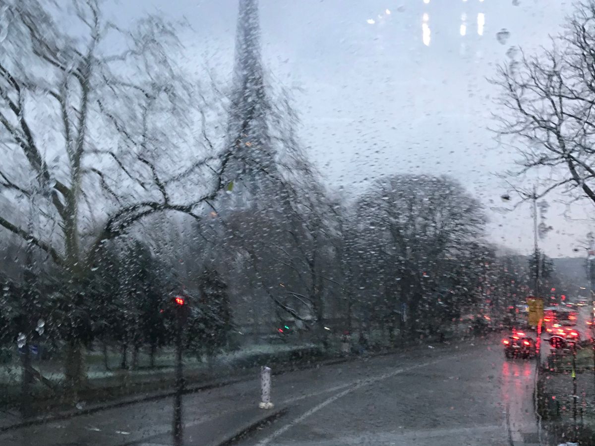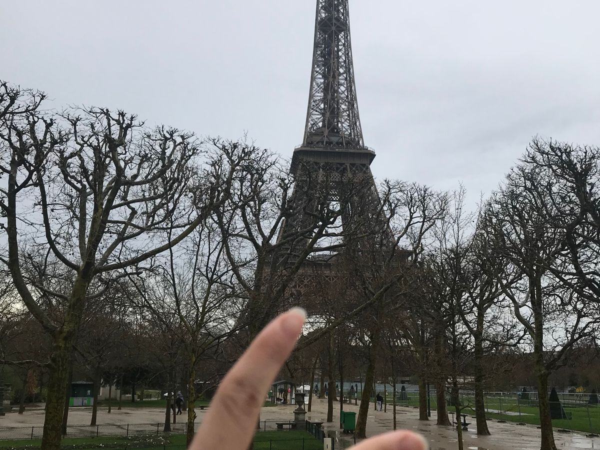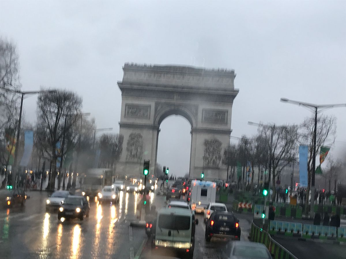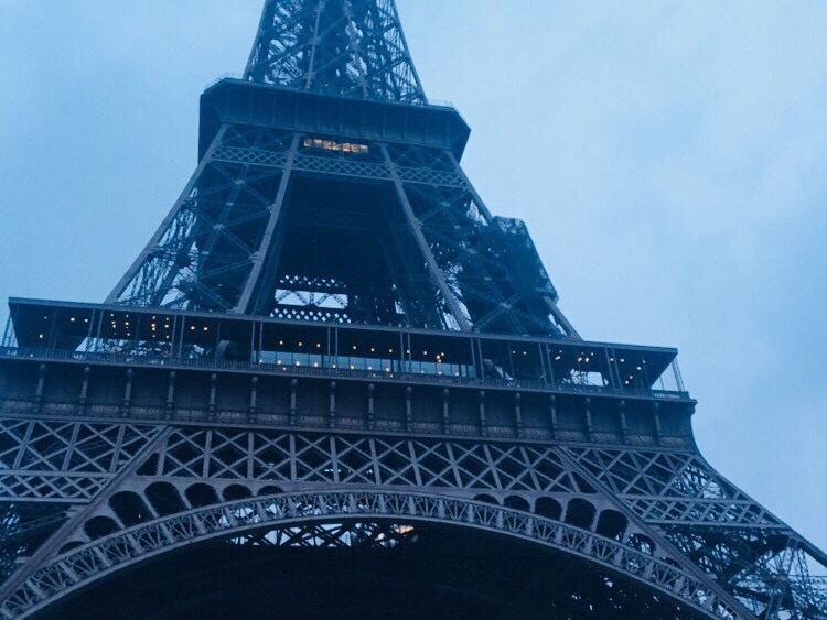 小雨が降る夕暮れのエッフェル塔、凱旋門が見れて嬉しかったです(o^^o)