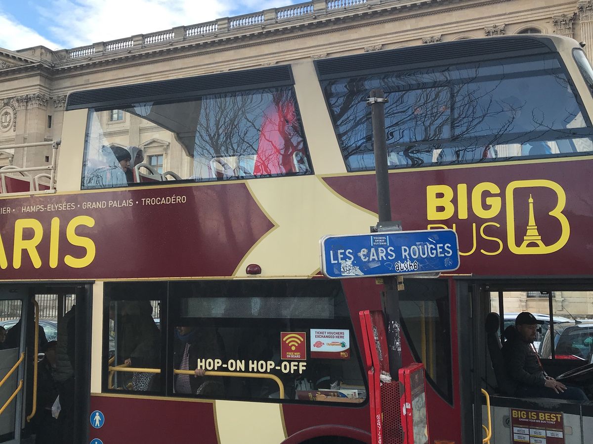 曇り空で、時折小雨もパラつく生憎の天気。2階オープンは寒く、1階からの車窓を楽しみました。パリの初日か2日目に予定に入れましょう。バスがわりに使わないのなら、1日券でいいと思います。また、トリコロールカラーなど3社あるみたいです。3社の比較はしていませんが、茶バスよりトリコロールカラーが良かったです。