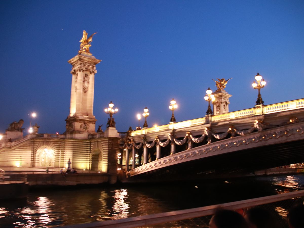 旅の最終日の前日に予約し、サンセットのパリを見るために夜9時半頃に乗り、昼間とは違うパリの美しい景色と一度でパリの主要観光地をすべて船からみることができました!セーヌ川には多くの橋がありますが、ゴシック調でデザインも違います。夜はライトアップされてロマンチックな景色です。