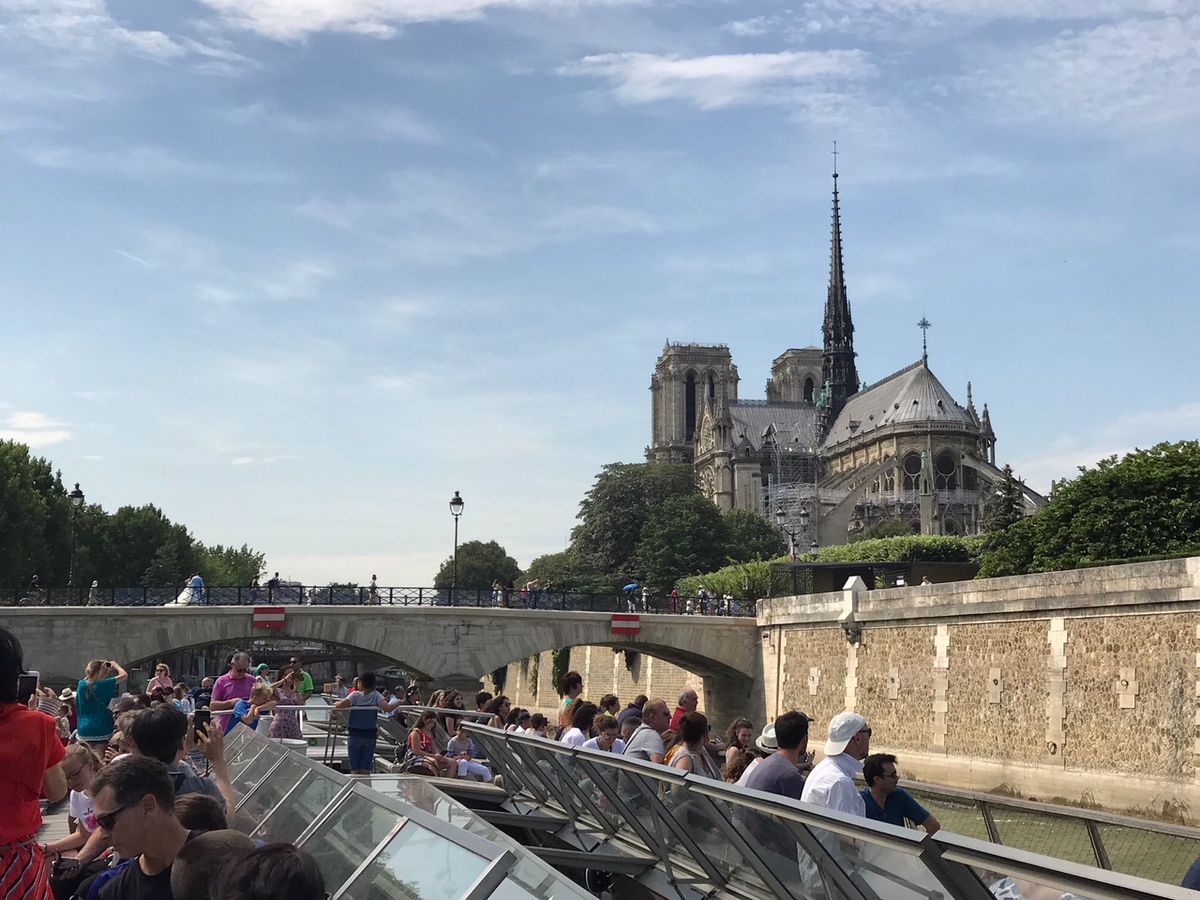 船の屋上に乗船したのですがとーっても暑かったです、、、でもセーヌ川の風を体全体で感じることができ気持ちが良かったです!