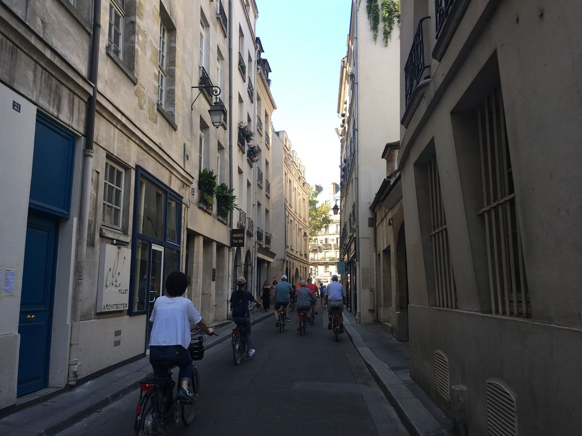 自転車でしか行けないような場所にも案内してもらい、パリの街を快走!