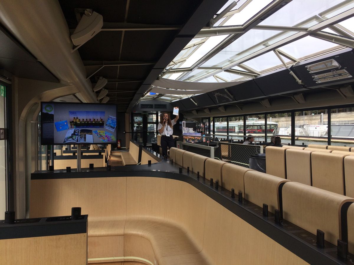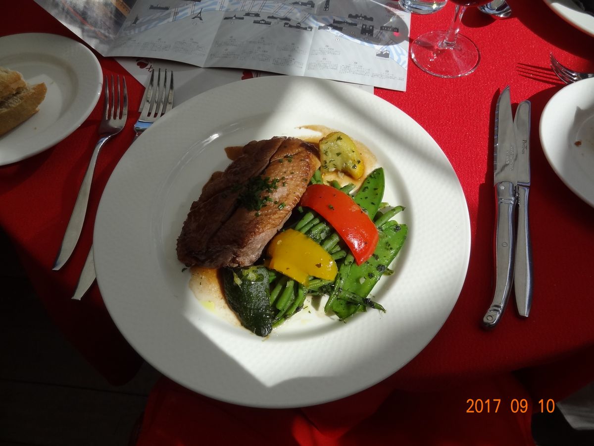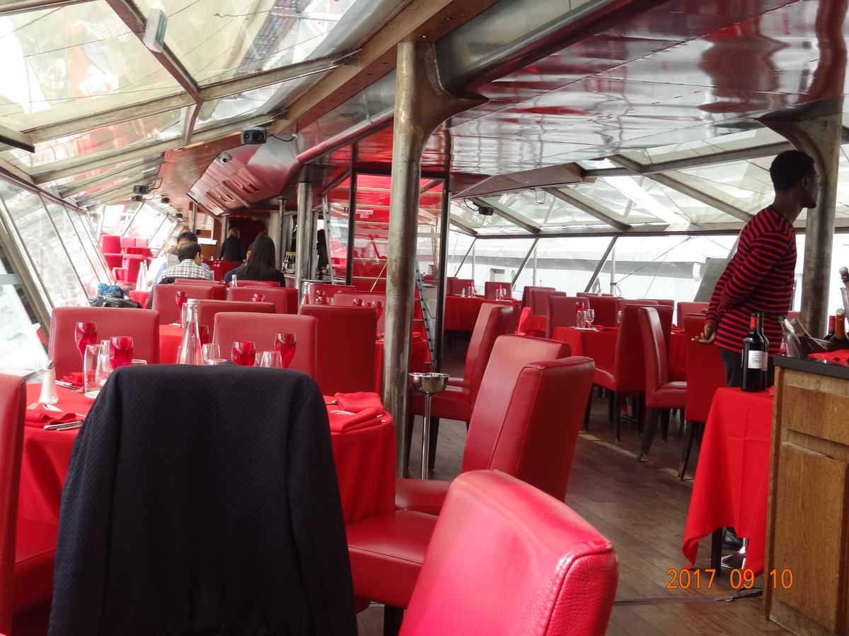 パリに朝到着した日の午後に参加しました。錠先場所はわかりやすく。グーグルマップに従ってオペラ地区からメトロに乗り、迷わずに到達できました。船の上としては上々と思われるフランス料理をコースでゆったりと楽しみながら、セーヌ川沿いの名所を見物でき、とても気分の良い午後を過ごせました。テーブルワインや水も含まれていますし、二人なら二人用のテーブルに案内してもらえることもあり、価格も割高感はありません。ディナーの方が綺麗なのだろうとは思いますが、パリが初めてということもあって、昼間の景色でも十分満足でした。時間敵にも余裕があり、自由の女神の近くなど要所では船上に上がって景色を楽しめます。