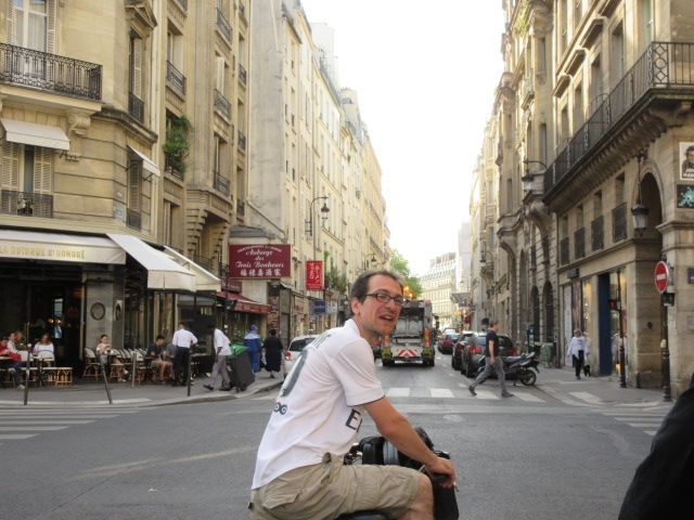 裏路地から大通りまで、走り抜けていきます。日本とは逆通行なので車道を走るのが怖いかなと思っていましたが、車道に自転車レーンもあるのでパリを走る車も自転車に慣れているのか、ジェントルマンなのか怖い思いはしませんでした。