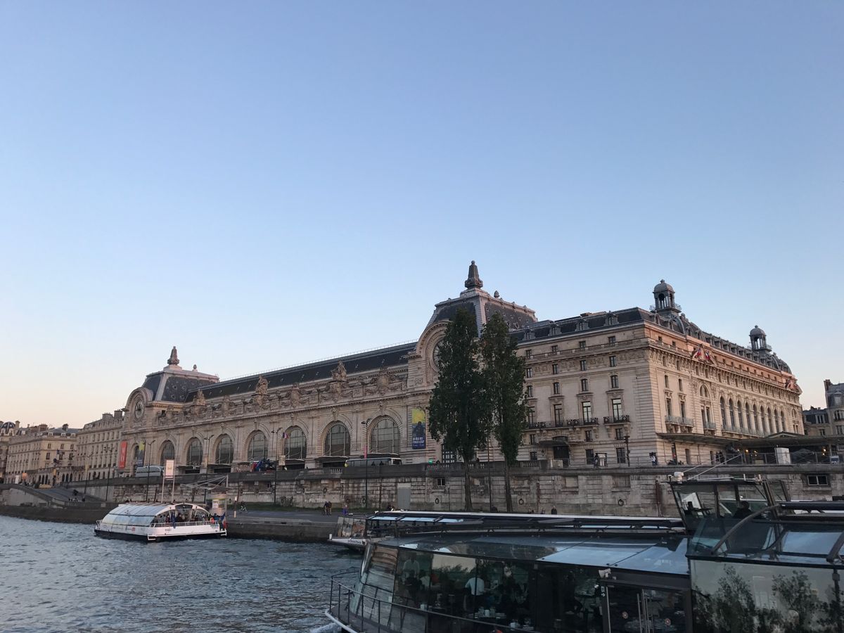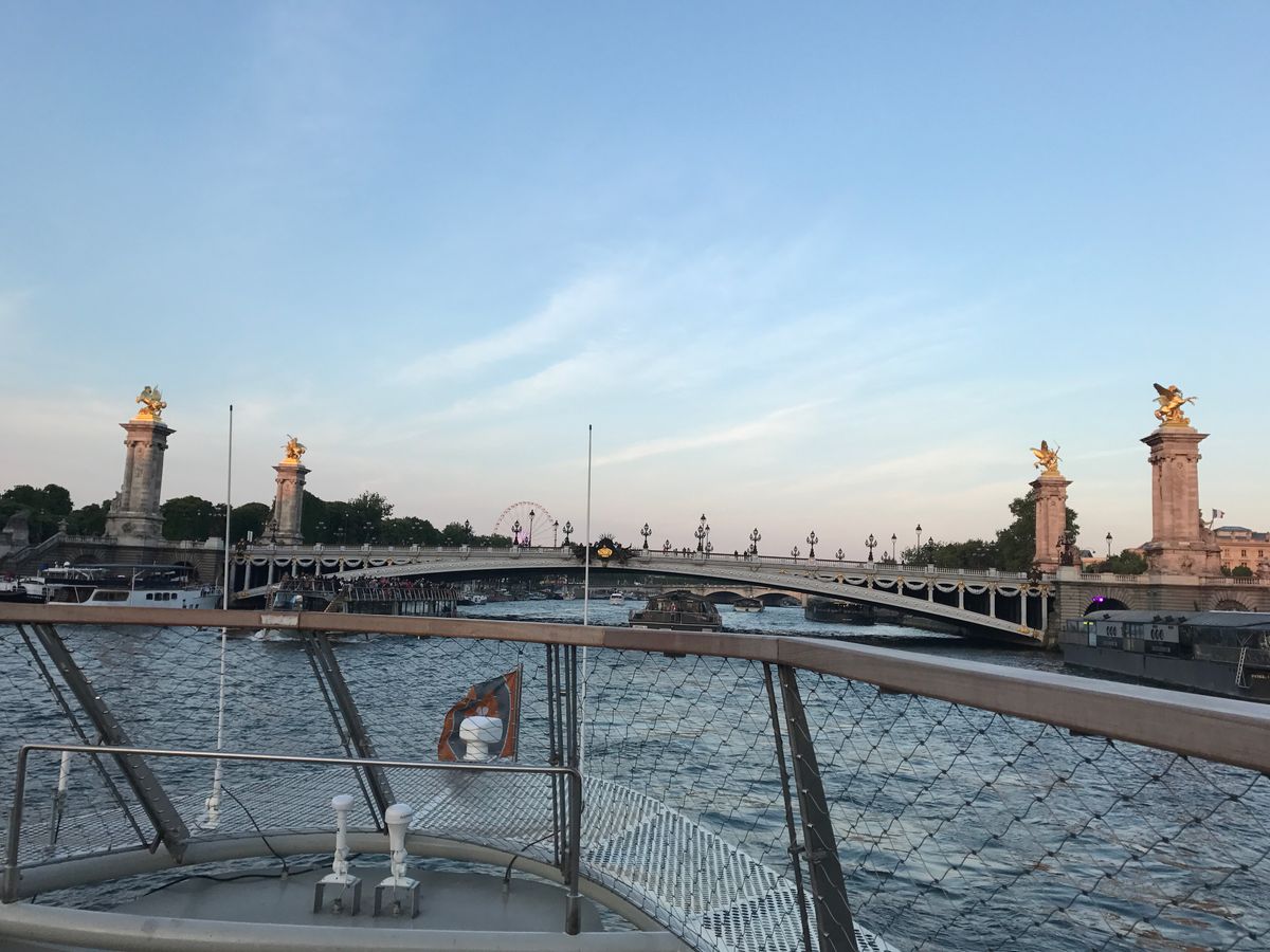 船の中には日本語ガイドが付いており、落ち着いた口調の説明を聞きながらゆっくりセーヌ川からパリの建造物を満喫しました。エッフェル塔、ノートルダム寺院、オルセー美術館。みどころ満載のクルージングでした。
