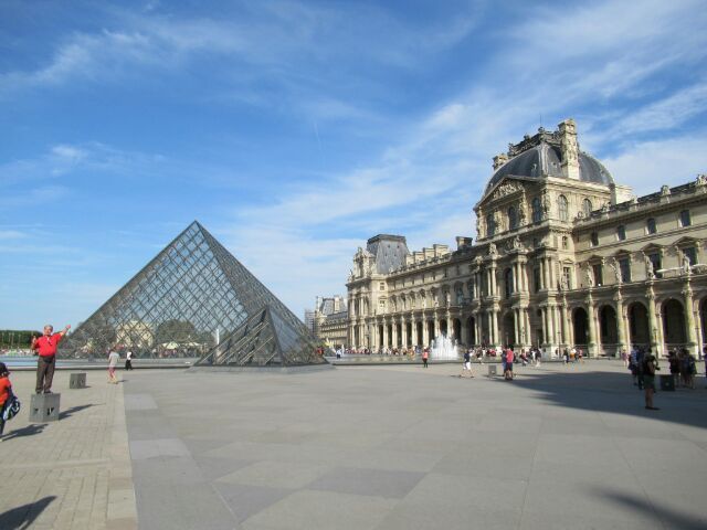少し走り、また、自転車で通過して大丈夫?の通路を抜けると、そこはルーブル美術館のカレ広場。自転車の人が誰もいないなかスイースイーっと気持ちよく走ると、今度はルーブル・ピラミッド。