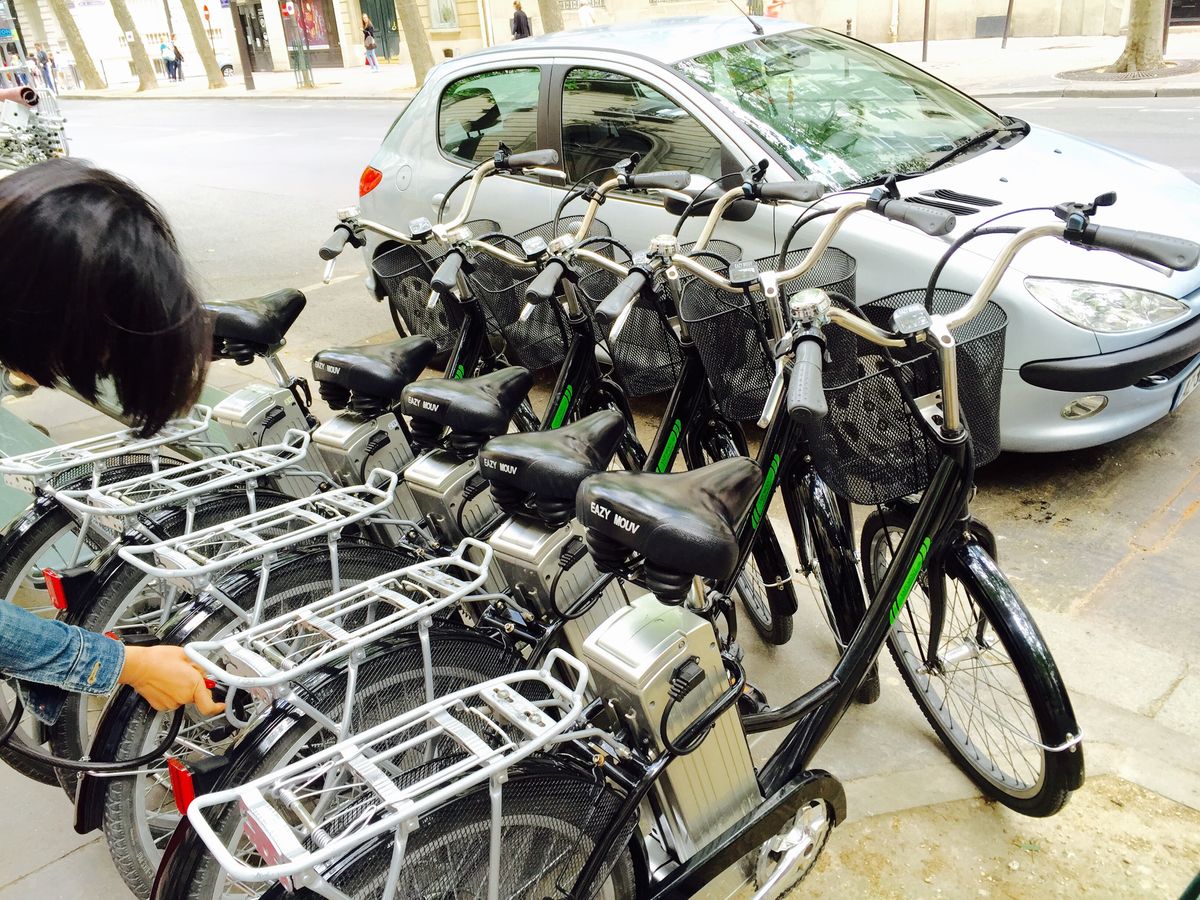 普段ほとんど自転車には乗りませんが、パリでの電動自転車は初心者でもすぐに乗れます。ただ、時期が3月でとっても寒かったですが、あったかくなるベストを欲しい方には無償で貸しておられました。