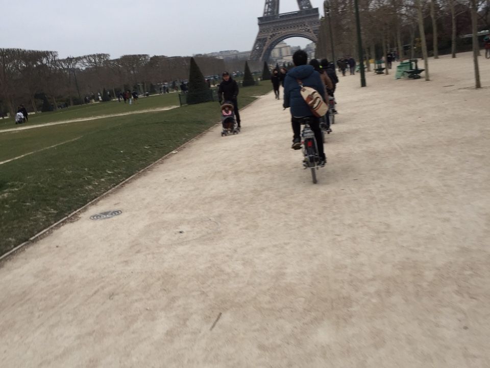 はじめてのパリ、そして一人でのパリ滞在であることから、まずはパリ入門ということで、ツアーに参加しました。観光バスでざっと回ってしまうことも考えましたが、普段から歩いて町を散策したり、地元に近いところで体験をすることを好んでいたため、自転車でのツアーを選択しました。当日はまだ風が冷たかったですが、何よりガイドさんが明るく面白く、また参加者の方もみなさん素晴らしく大満足でした。