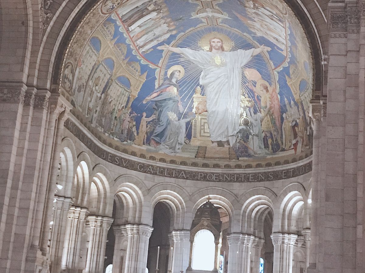 リタイヤ後の夫婦が参加。モンマルトルの丘からパリの街が一望出来、絶景でした。普仏戦争の犠牲者慰霊のサクレクール寺院内は荘厳な雰囲気で、聖母マリア様にロウソクを上げ(2ユーロ)久々に真面目な気持ちになりました。