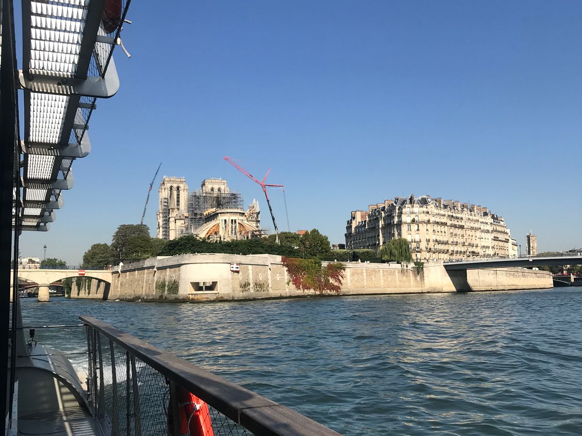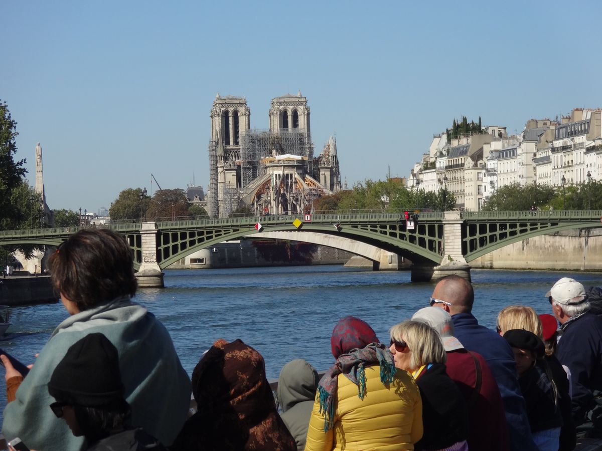 修復中のノートルダムが橋をくぐって見えた瞬間は「おおぉ〜」と悲しそうな声が一斉に上がり、いろいろな人種の方がいましたが皆さん気持ちはおなじなんですね。復興をお祈りしています。