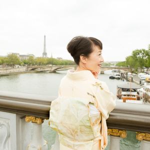 パリで着物を着て小さな文化交流。亡き義母の着物を着ることで一緒に旅をしているような気分。当日は生憎のお天気でしたが、初春の穏やかなパリでの撮影は、カメラマンさんとの自然なやり取りの中で、終始楽しく過ごすことがでしました。最初は少し緊張しましたが、仕上がりの写真を拝見すると、最初と最後では表情が和らいでいるのがわかります。大満足です。これもカメラマンさんのお陰です。またお願いすると思います。よろしくお願いいたします。
