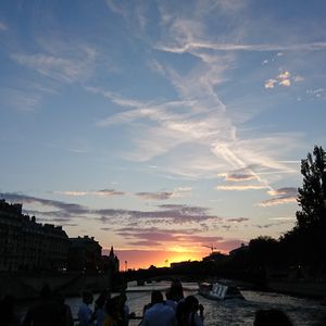 船が折り返して出発した船着場に戻ってきたところでやっと日が沈み、エッフェル塔のシャンパンフラッシュを見ることができました。
