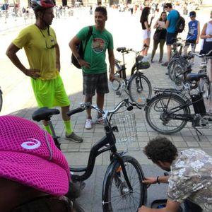 パリで自転車に乗る機会はあまりないと思い娘(18歳)とふたりで申し込んでみました。有名な場所はもちろんですが普通に道路を自転車で走るだけでもとてもとても楽しかったです。何箇所か自転車から降りてその場所の説明をしてくれます。参加者は国籍、性別、年齢さまざまでしたが仲良くわきあいあいとできました。ガイドの方もとても親切でおもしろく自転車で少し遅れた人がいてもちゃんと気を配ってくれるので安心です。