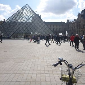 翌日は晴れていて、ルーブル美術館の近くを散策していたときに、参加したツアーの自転車隊を見つけました。