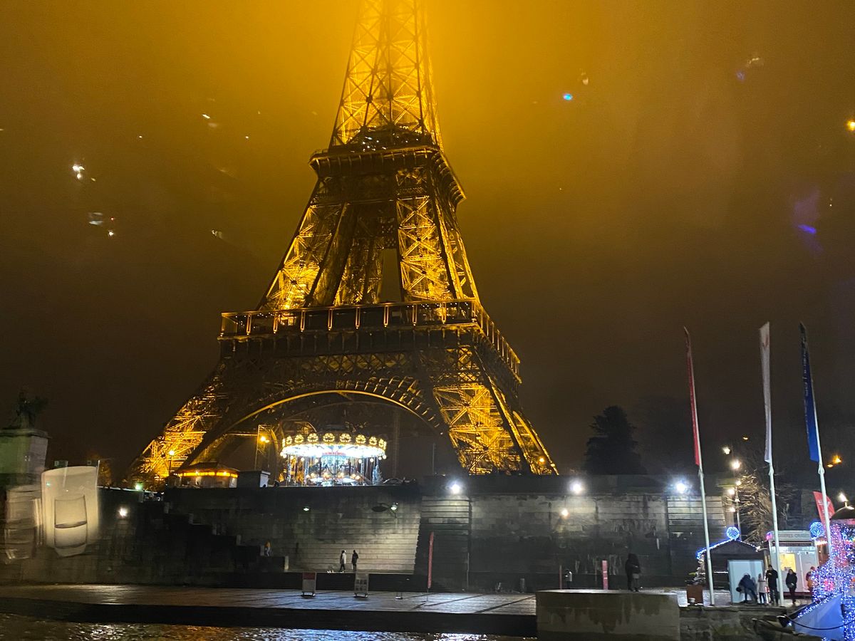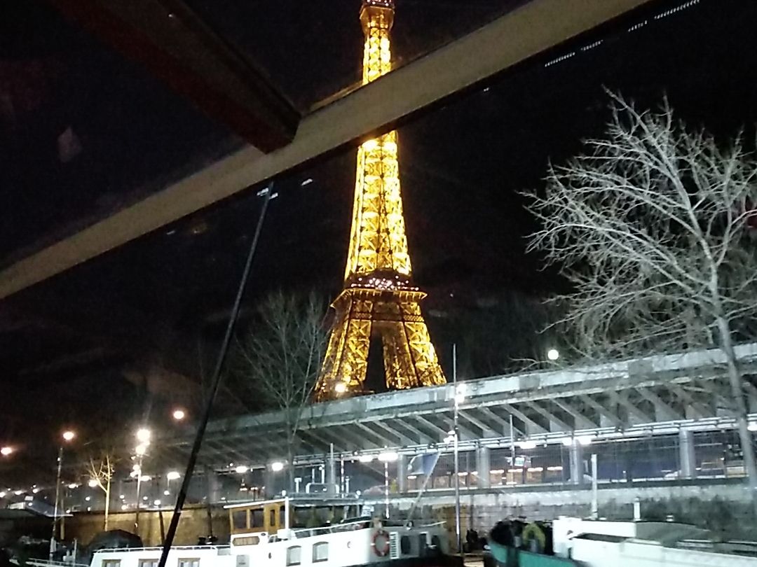 1月29日、アラカルトプランで参加しました。前日の雨がうその様な好天です。早い時間の出航で心配しましたが、19時のエッフェル塔のシャンパンフラッシュが見れました。今回の旅行プランでは、時間が短くエッフェル塔の情報を把握していませんでした。思わぬ光景に妻と感激しました。