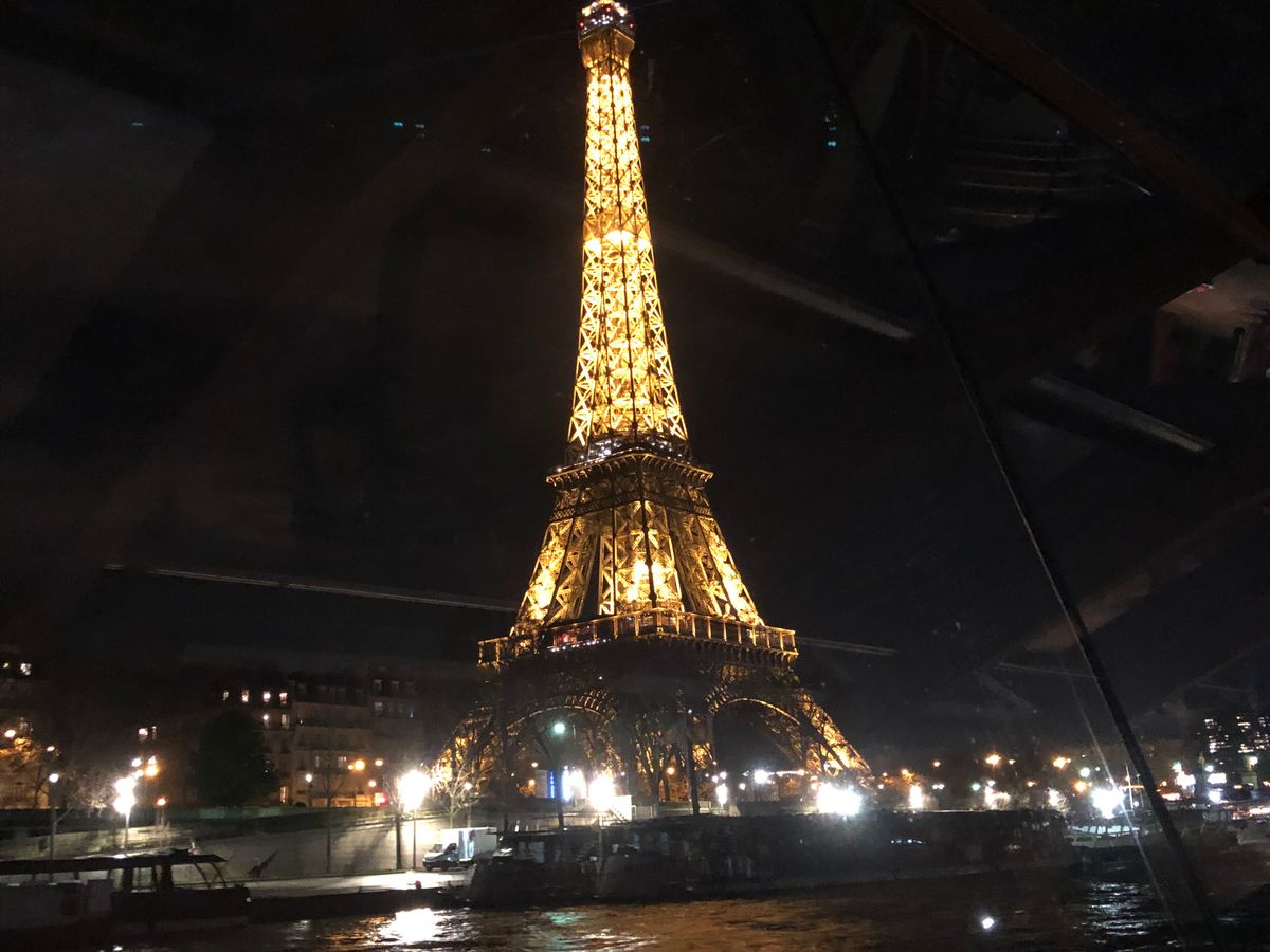 パリは日本より少し日没が遅いので出向時間はまだ少し明るかったですが、だんだん暗くなってきてきれいな夜景を楽しむことが出来ました。