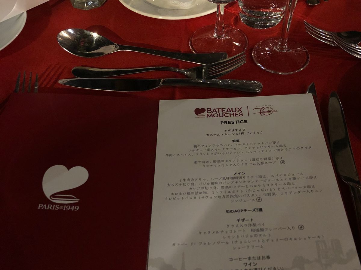 バトーパリジャンで窓際の席のプランで申し込んだのですが、正直食事は期待していたよりは良くなかったです。