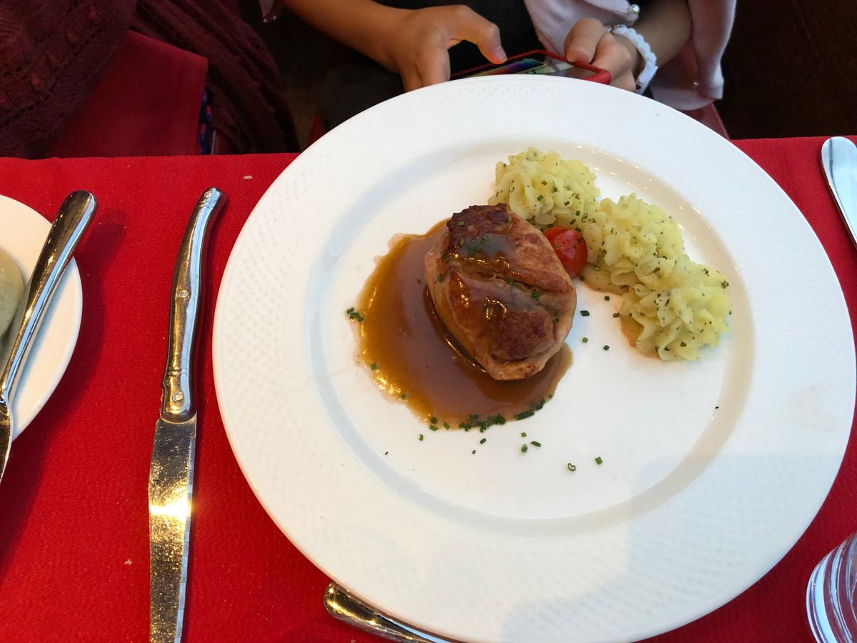 窓側席のプランにしましたが、多少高くてもこちらにして本当に良かったです。一生の思い出と今までにない贅沢感を味わう事ができました。料理は特別というわけではありませんが、前菜の選択メニューにフォアグラもあったのでそれなりの良さはありました。音楽演奏は雰囲気を盛り上げてくれますし、途中写真を撮ってくれて欲しい写真があったら20ユーロで買うというシステムでした。記念に一枚買いました。