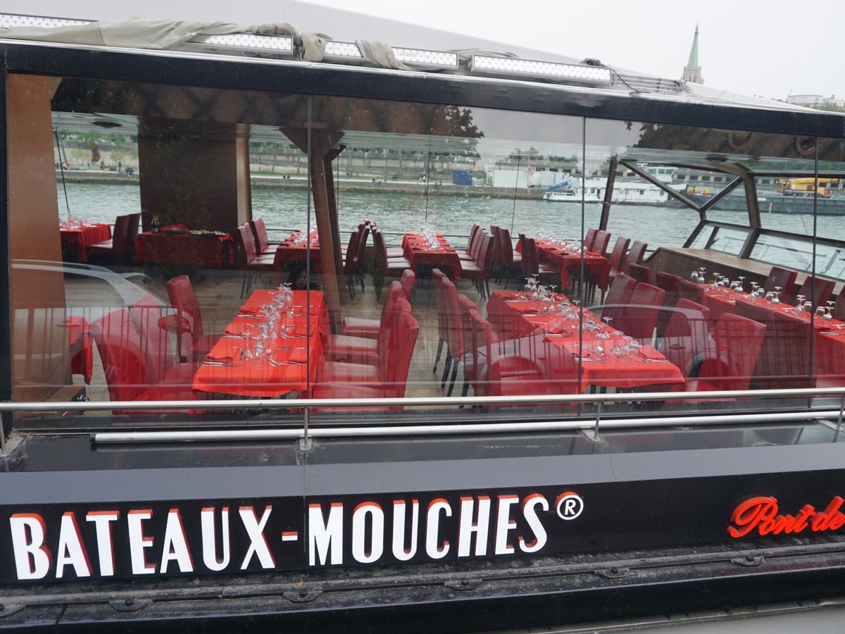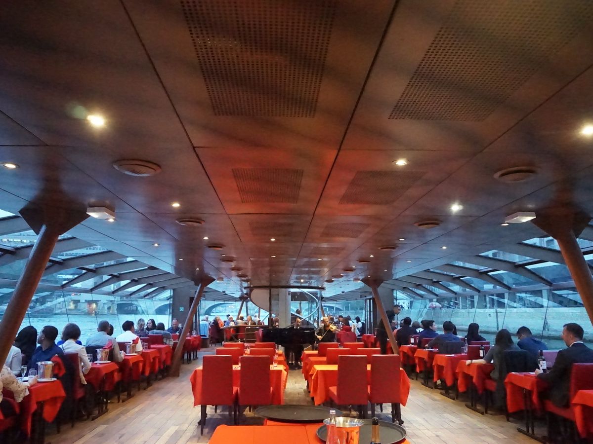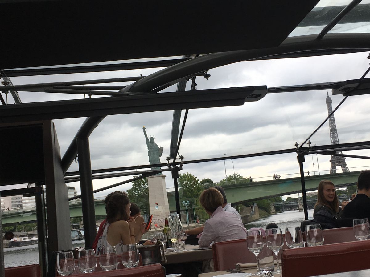 パリには仕事を含め10回近く来てますが、初めてバトー・ムッシュに乗りました。とても豪華で料理もおいしくて、あっという間の2時間でした。テーブルの間隔がとても広くて、二人でのロマンチックな夜景を楽しめたと思います。