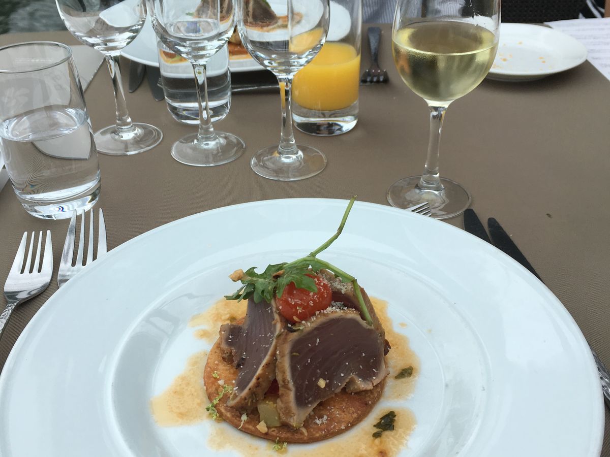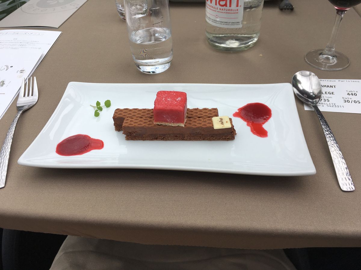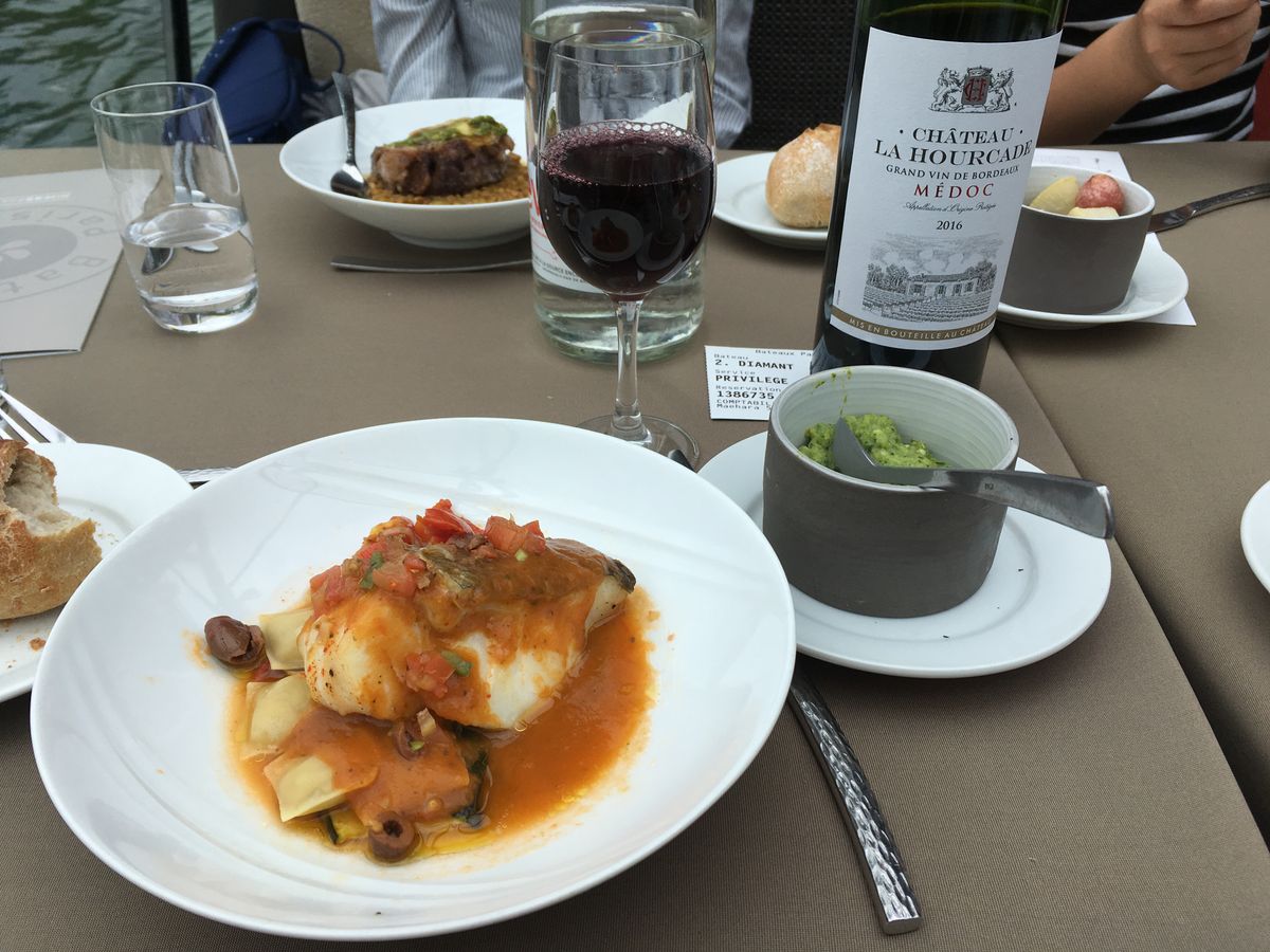 パリ旅行の最終日の記念にランチクルージングしてきました。お料理はお味も盛り付けも日本のランチクルージングのフレンチと比べると少し大味な感じがしましたが、ワインはとても美味しくアコーディオン演奏も素敵で良い雰囲気でした。