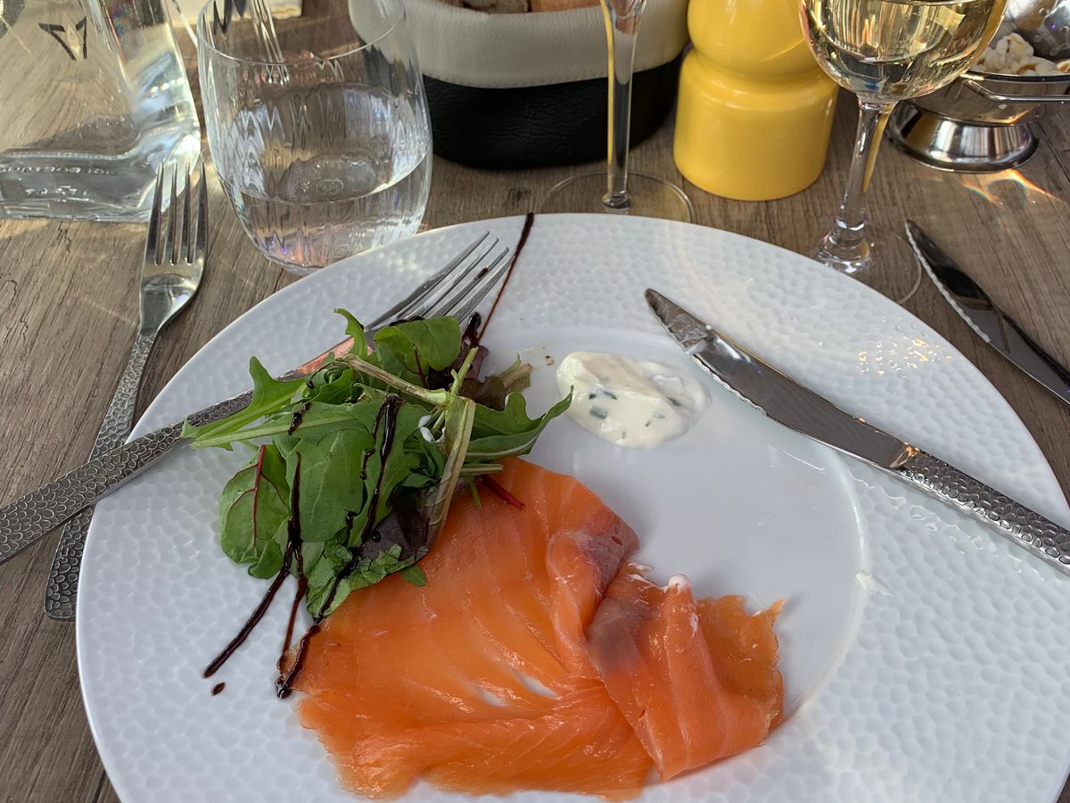 出発前にデッキに出てみようと思って席を立つと、オーダーをとるので席にいてくれと言われました。その割になかなかオーダーをとりにこず待たされましたし、オーダー後はドリンク提供、写真撮影、前菜が運ばれてきてデッキに行く時間はありませんでした。