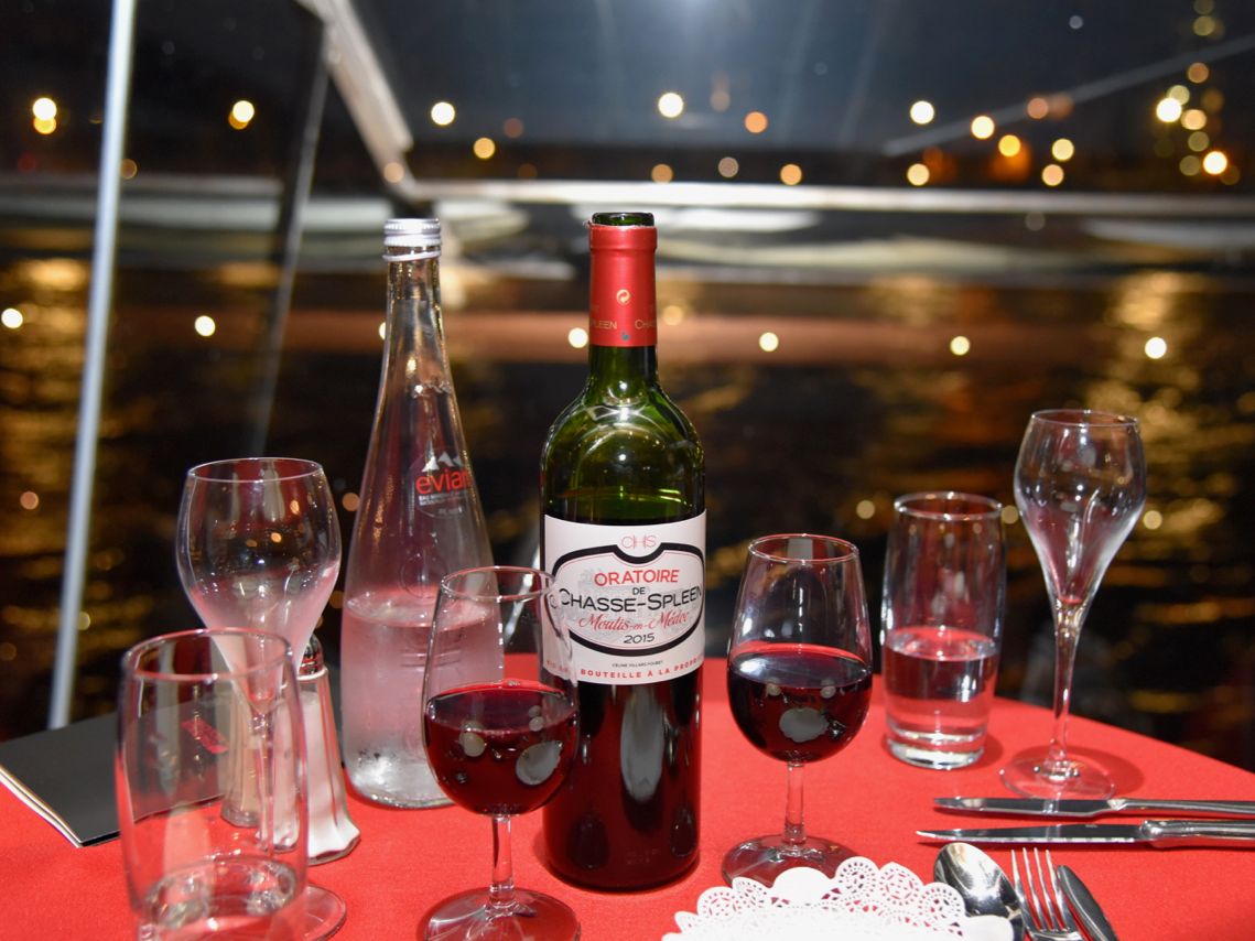学生旅行だったので1番安いディナークルーズを選びました。ですが食事もしっかりコースででてきて、ウェイターの方も写真を撮ってくださったりとても良い対応をしてくださいました。なにより窓が全面ガラスだったので本当によく景色が見えました。やはりエッフェル塔をセーヌ川から見る景色が最高でした。パリらしい音楽もかけてくださり、旅行最終日の夜がとても素敵なものになりました。また利用したいと思います!