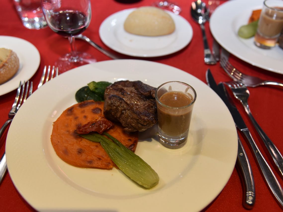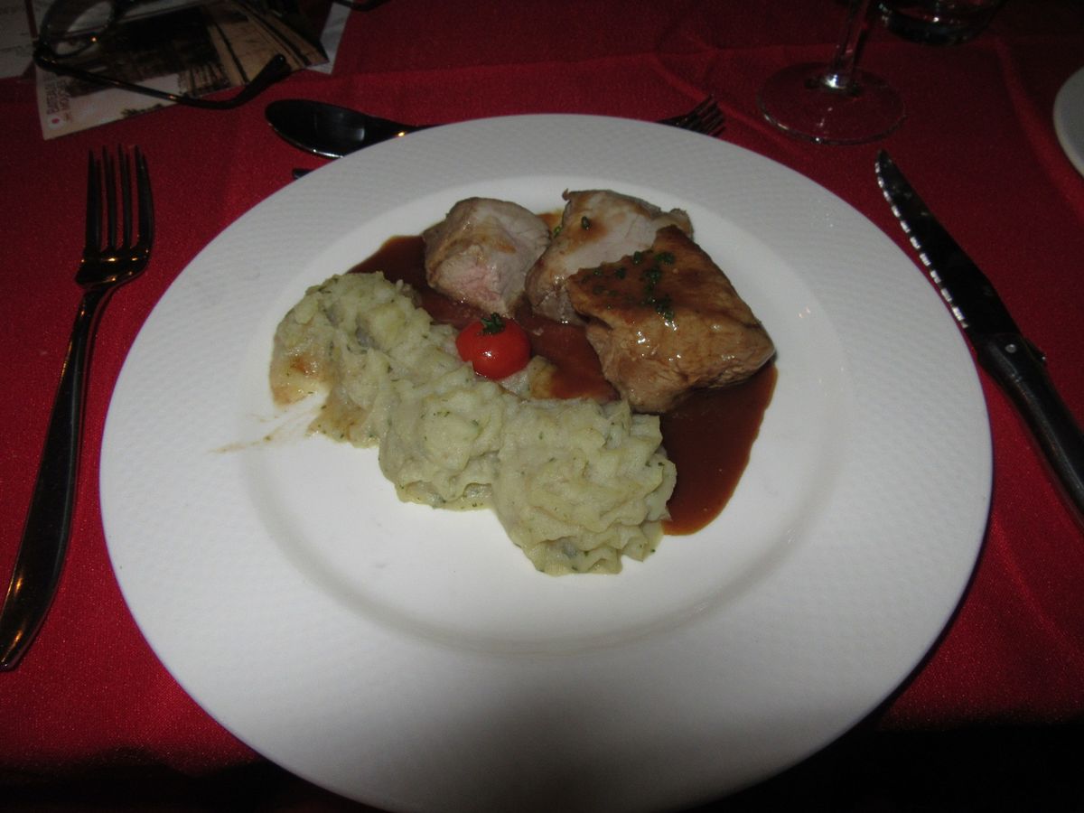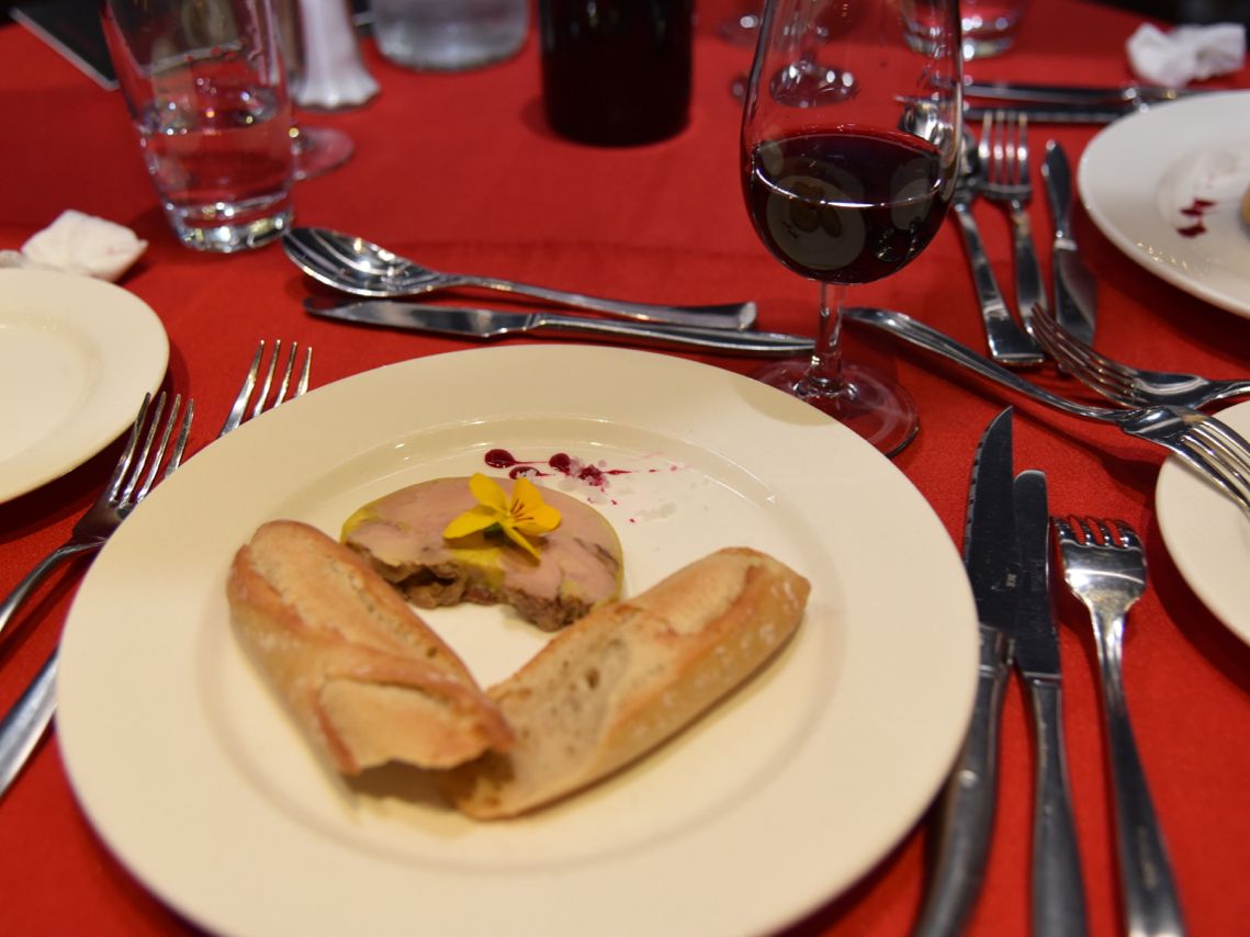食事もフランス料理コース料理で、乾杯のシャンパンと赤ワイン(ボトル1本)が付いて、2時間半を存分に楽しめました。