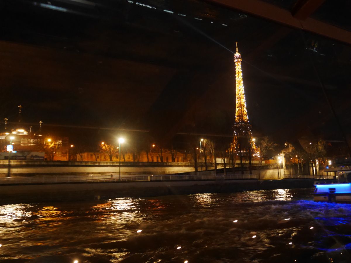 乗船前に雨で水位が高く東側は回れないと言われていたが、結局すべて回れたので良かった。但し、二階の甲板には上がれなかった。その分下船ぎりぎりまで生演奏を聴かせてくれてとても盛り上がりました。エッフェル塔のライトアップもとてもきれいでした。