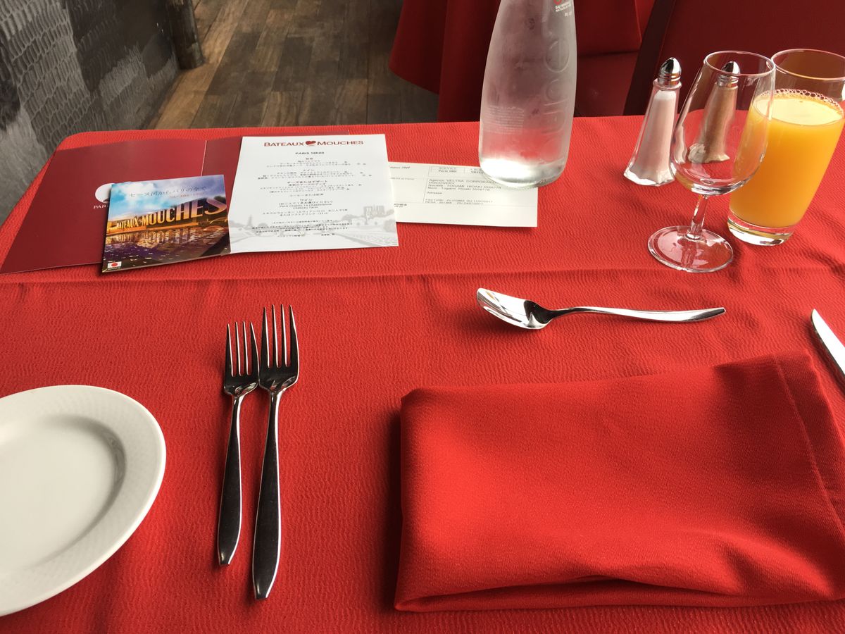 お一人様で贅沢にセーヌ川ディナークルーズを満喫させてもらいました。受付時に日本人とお伝えすると、日本語のメニューとクルージングの案内マップももらえて大変助かりました。アルコールも飲めないため、ワインではなくてオレンジジュースに変えて頂くことができました。