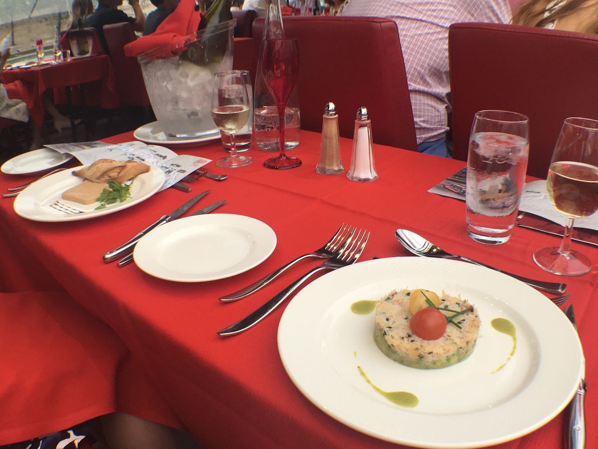 フランス旅行の最終日の夜に予約しました。夕暮れから夜にかけて、いろんな表情のセーヌ川を眺めながら素敵なディナーをとることができました。頼んだ料理と違うものが出てきましたが、違いますと伝えると丁寧に対応していただきました。