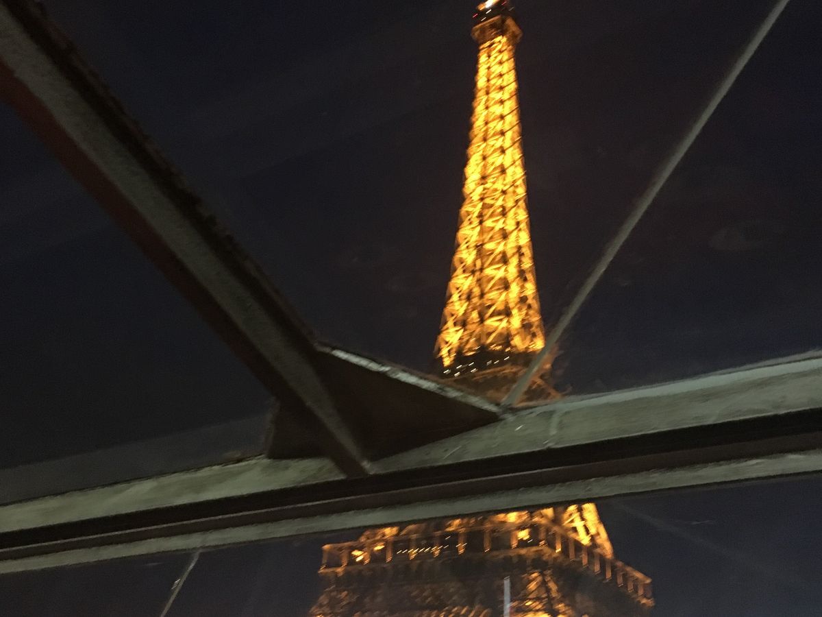 時期的に日暮れが遅いこともあり、折り返し地点を過ぎた頃にやっと日が暮れてきて、下船するころには真っ暗という感じでしたが、エッフェル塔のシャンパンフラッシュも見ることが出来ました。(船上に上がったり、食事を食べたり、少々慌ただしかったのですが。。)