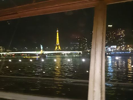 セーヌ川ディナークルーズは優雅で贅沢な時間でした。また、船の上から見るエッフェル塔のシャンパンフラッシュは格別でした。
