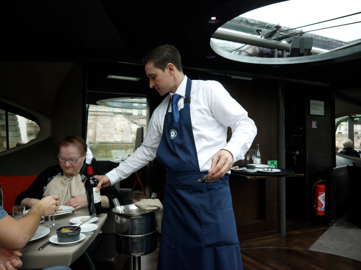 5人で申し込み、いざスタート!食事もワインも進み、適度なサービスで逆にのんびりパリの景色を楽しみながら食事が出来ました。シンプルで良かったです。もちろん食事も美味しかったです!