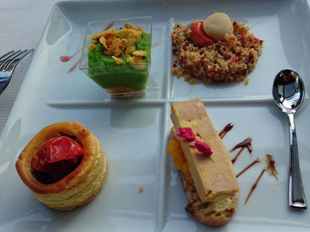 フォアグラ、キャビア等ディナーらしい食品が出ましたが私の舌には合わず食事の感想はあんまりです。音楽が風景事に変わり気分は盛り上がります。誕生日の方はケーキが運ばれていたり良い記念になると思います。帰りは終電の時間帯ではないのでメトロで帰れました。歩いて帰れる場所にホテルがあると楽ですね。